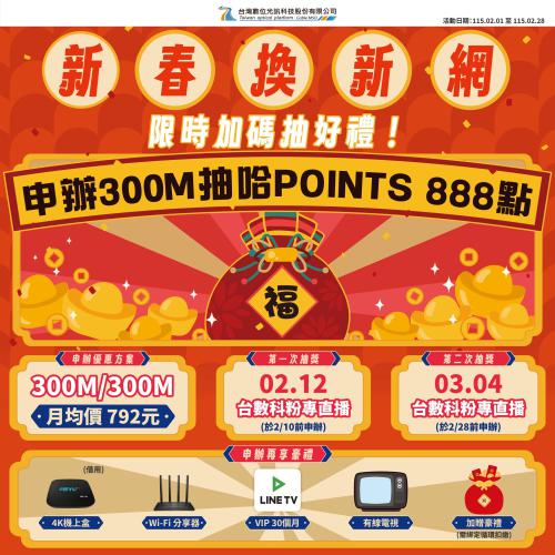 | 光纖方案升級:光纖方案升級申辦限定獨立線路光纖方案,最高贈送。 | 849 點 |